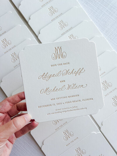 Ensure a fully custom, cohesive, and curated look for your wedding details from the start with Save the Date design.